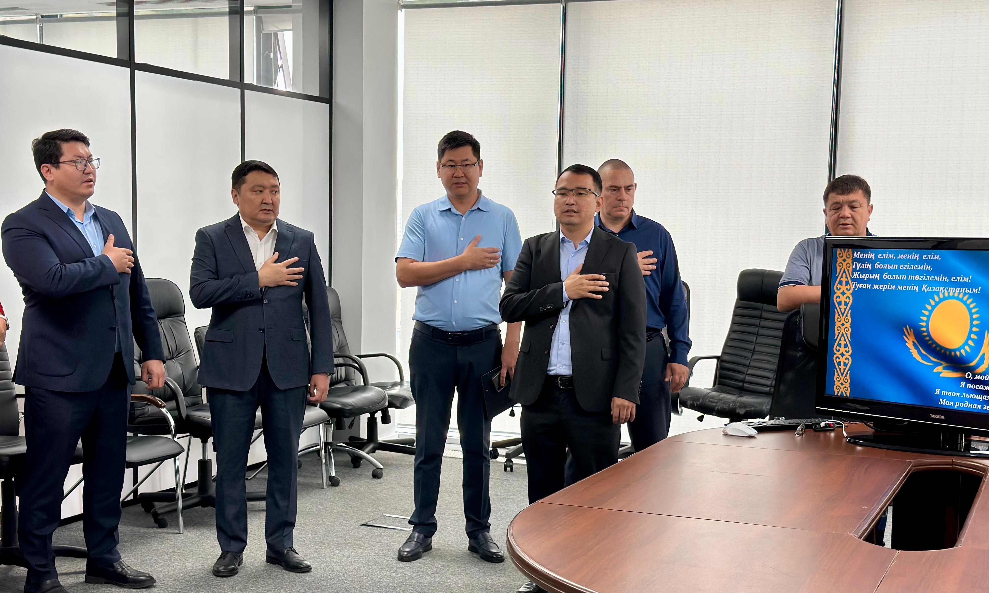 Мероприятие началось с исполнения Государственного гимна Республики Казахстан. Далее для сотрудников была проведена лекция об истории появления государственных символов, их значении и роли в жизни страны.